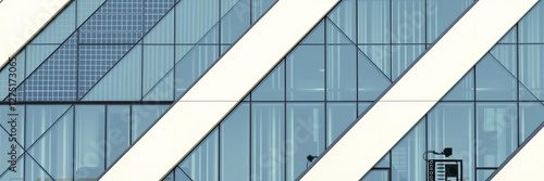 © Chalermrach, Fototapeta premium Abstract geometric patterns on the exterior of a sleek modern architecture building, abstract, design