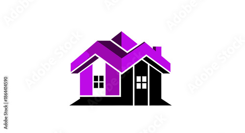 © Antoni, Fototapeta premium Abstract Geometric Purple and Black House Logo or Symbol on Isolated White Background