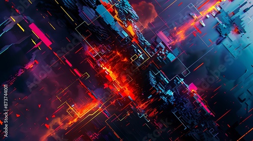 Fototapeta premium Abstract Geometric Shapes and Lines Converge in Vibrant Digital Art