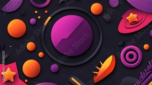 © fledermausstudio, Obraz premium Abstract Geometric Shapes Background Purple Orange and Pink Design