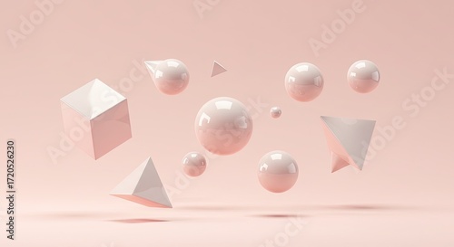 © Arg Studio, Obraz premium abstract geometric shapes float elegantly in a clean, bright studio