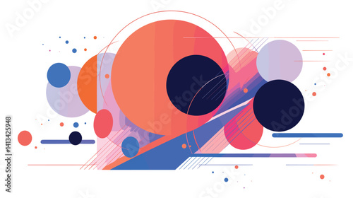 Obraz premium Abstract geometric shapes in blue, red, and pink on white background flat vector illustration