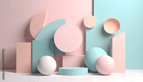 © Berlian, Fototapeta premium Abstract geometric shapes in pastel colors