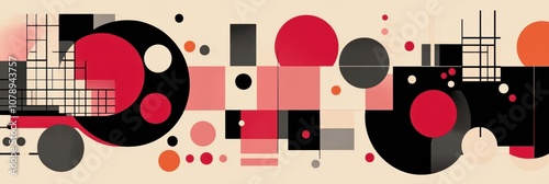 © Inlovehem, Obraz premium Abstract geometric shapes in red, black, and beige on a textured background.