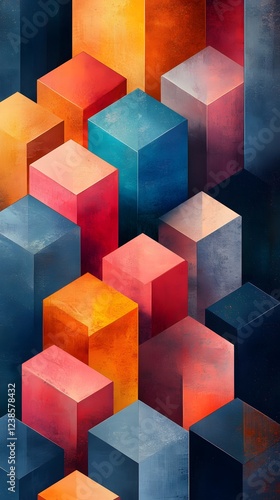 Naklejka premium Abstract geometric shapes in vibrant hues create a visually striking...