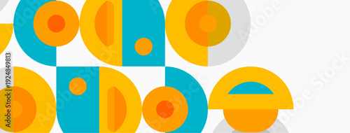 Obraz premium Abstract geometric shapes, orange, turquoise. Minimalist design, repeating...