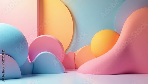 Fototapeta premium Abstract geometric shapes, pastel colors create a calming interior design...
