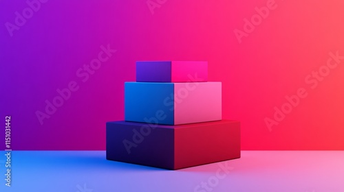 © thekob5123, Obraz premium Abstract geometric shapes stacked on each other with vibrant pink and blue gradient background for creative design projects and artistic compositions