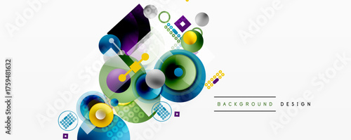 Fototapeta premium Abstract geometric shapes, vibrant colors, modern design elements. Circles,...