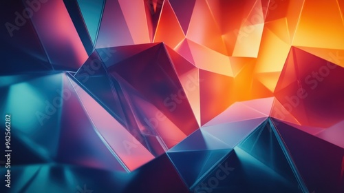 © Rere_Art151, Obraz premium Abstract Geometric Shapes with Red, Orange, and Blue Gradient