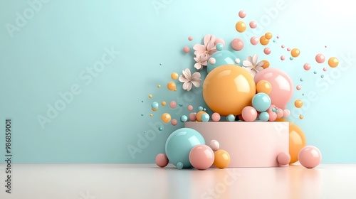 © Kritsada, Fototapeta premium Abstract geometric shapes with reflections, vibrant color palette, 3D illustration