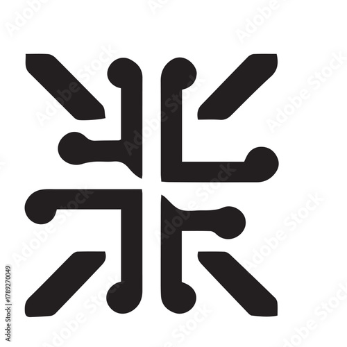 © christian, Obraz premium Abstract geometric symbol with rounded edges and angular extensions, black on white.