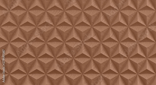 © ParamePrizma, Fototapeta premium Abstract geometric texture of triangular and hexagonal convex wooden elements. 3D illustration