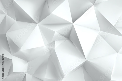 © Puan, Fototapeta premium Abstract, geometric, textured background with varying-sized, interconnected, triangular planes in white