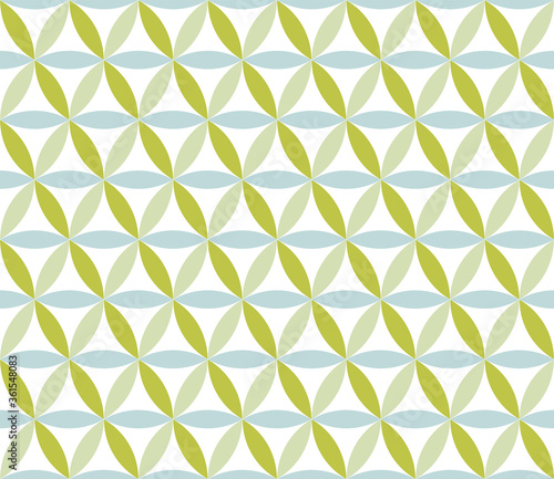 Fototapeta premium Abstract geometric vector seamless pattern. Blue and green crossing circles. Abstract floral pattern in arabic style. Vector illustration. Simple design for fabric, wallpaper, scrapbooking, textile