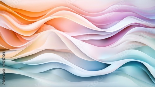 © Wanilla Artworks, Obraz premium Abstract Geometric Wave Pattern in Soft Tones and Fluid Motion