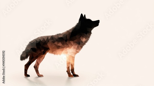 © logitech, Naklejka premium Abstract geometric wolf silhouette, profile view, with sun rays
