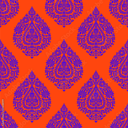 © VATS, Fototapeta premium Abstract geometrical damask pattern with orange background.