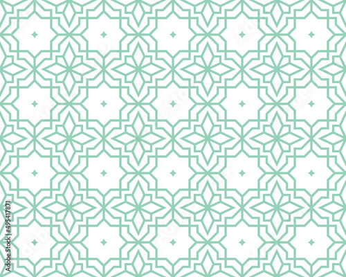 Fototapeta premium Abstract geometry pattern in Arabian style. Seamless vector background. White and green graphic ornament. Simple lattice graphic design
