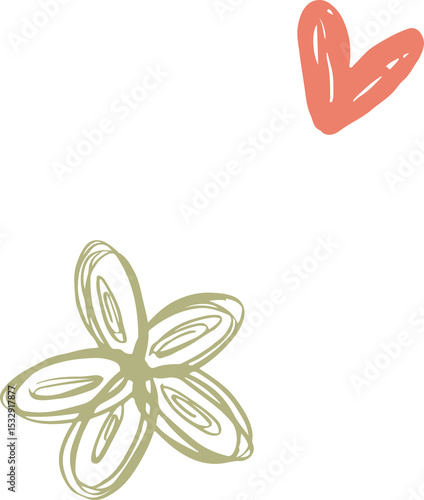 Obraz premium Abstract gestural doodles are floating on transparent background, with coral heart and lime flower