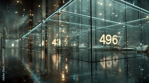 Obraz premium Abstract Glass Structure with Glowing Numbers and Reflective Surface