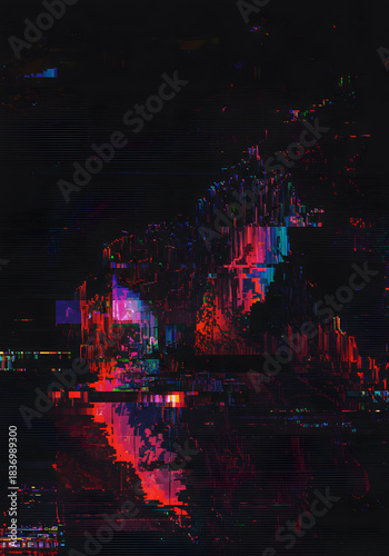 © Nokkz, Obraz premium Abstract Glitch Art Dark, Colorful Digital Noise, Error Effect, Pixelated, Distorted Visuals.