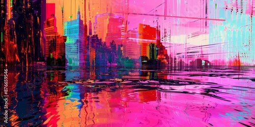 Obraz premium Abstract glitch art with distorted visuals and vibrant colors, evoking a...