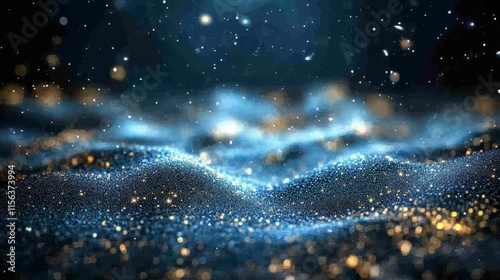 © Hafidz, Naklejka premium Abstract glittering dark blue and gold particles background.