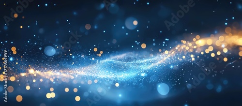 © pngking, Obraz premium Abstract glittering wave pattern with blue and golden bokeh lights on dark background for digital design and artistic presentations Copy Space