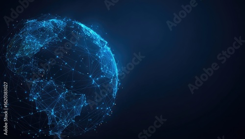 © Mountain, Obraz premium Abstract globe, connected by lines. Global network, digital, and technology