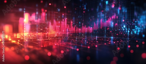 © MBRAMO, Fototapeta premium Abstract glowing background with red and blue digital lines and data streams.