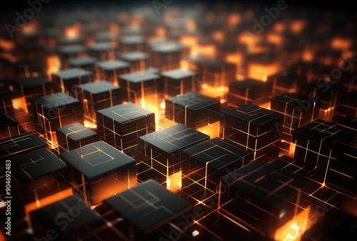Obraz premium Abstract Glowing Blocks Grid Technology Concept