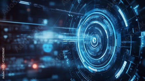 © @adha, Obraz premium Abstract glowing blue circle with data streams and digital information flow