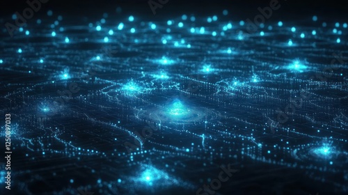 Obraz premium Abstract glowing blue digital network, data flow, connection, technology...