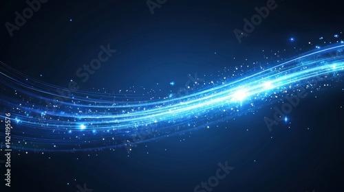 © Alfath, Fototapeta premium Abstract glowing blue light streaks on dark background.