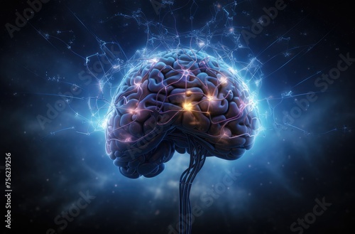 Fototapeta premium Abstract glowing brain Artificial intelligence and information concept.