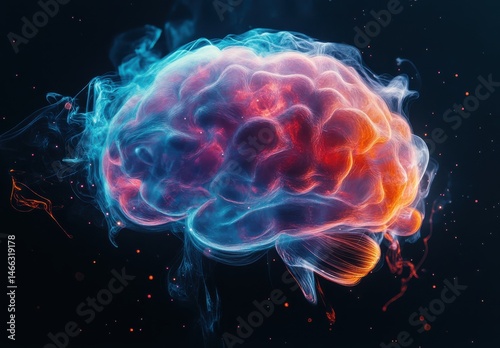 © Enjoy, Fototapeta premium Abstract Glowing Brain Digital Particle Rendering