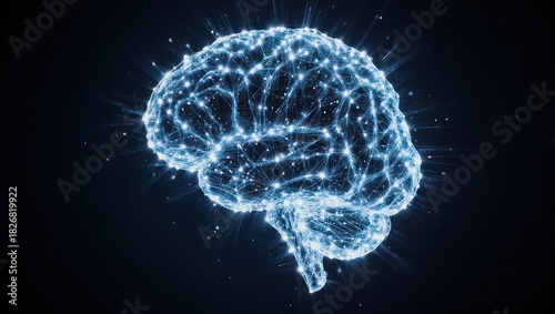 Obraz premium Abstract glowing brain network visualization representing artificial intelligence and neural connections.