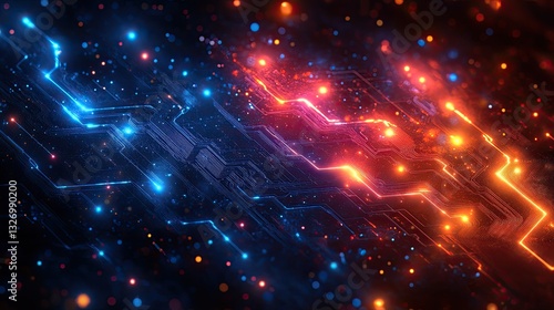Fototapeta premium Abstract glowing circuit board, technology background, digital data streams,...