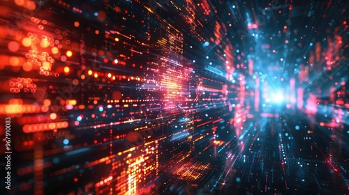 Fototapeta premium Abstract glowing digital data background, representing technology, data...