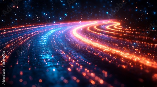 © Purnomo adi, Obraz premium Abstract glowing digital paths background illustration