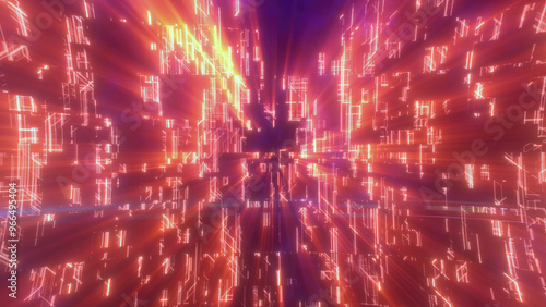 © Bolbik, Fototapeta premium Abstract glowing energy futuristic yellw hi-tech abstract background made of lines and computer stripes