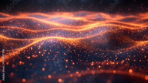 © Rudi, Obraz premium Abstract Glowing Energy Wave Background with Orange and Blue Particles