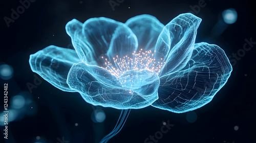 © Nadiyah, Fototapeta premium Abstract glowing flower in a dark background; artistic digital illustration for a nature-themed display or wallpaper