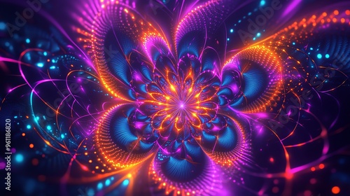 © BozStock, Fototapeta premium Abstract glowing flower with neon colors.