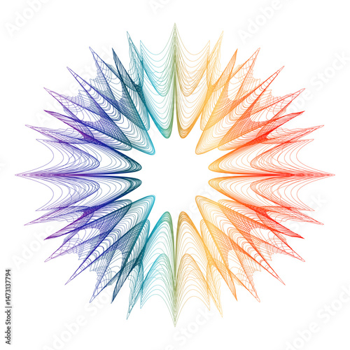 © Isasoulart, Fototapeta premium Abstract glowing geometry star with colourful light streaks, futuristic digital art concept, luminous floral-inspired design, transparent background, creative element, chakras. Sound wave.