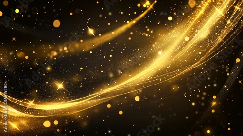 © Rauf, Obraz premium Abstract glowing gold vertical lighting lines on dark background with lighting effect and sparkle with copy space for text. Luxury design style. Vector illustration