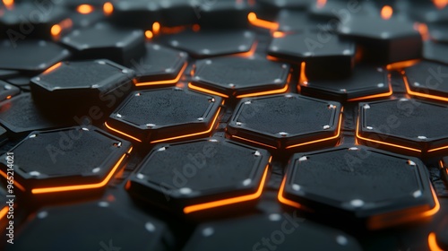 © fledermausstudio, Obraz premium Abstract Glowing Hexagon Pattern Futuristic Technology Background
