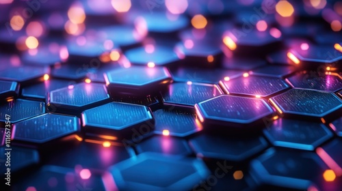 © AGUNG, Obraz premium Abstract glowing hexagonal network.