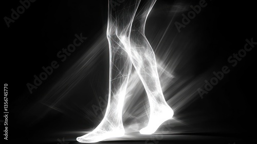 © yuan, Fototapeta premium Abstract glowing legs walking in dark studio